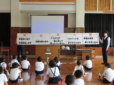 安全な自転車の乗り方「は・ひ・ふ・へ・ほ」をみんなで言いました。