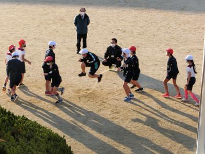 高学年は、とにかくたくさんとぼうということで、縄回しをものすごく速くして、がんばっています。