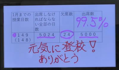 校長先生は、都呂々っ子のみんなが休まず元気に登校していることに「ありがとう」と話されました。