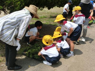 最後は、人権擁護委員のみなさんと、学級園に花を植えました。