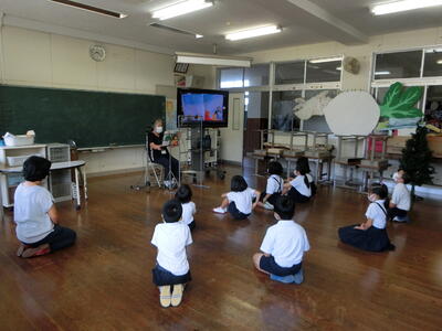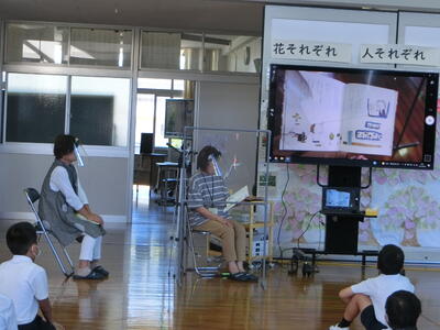 読み聞かせしている絵本をカメラに映して、モニターを通して絵本が見えるようにしました。