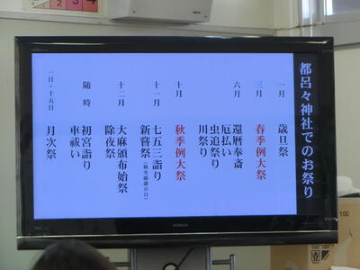 今回は、都呂々神社の森下さん(神職)を講師に迎え、お祭りについてお話を聞きました。