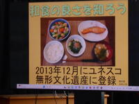 山下先生が、給食センターでミートスパゲッティーが作られる様子の動画を見せてくださいました。興味津々。くいいるように動画を視聴する子供たち。調理員の方々が、冷たい水で野菜を丁寧に洗ったり、大きなしゃもじで着材を約1時間混ぜたりと、大変な作業を心を込めてくださっていることを知り、感謝の気持ちが高まったようです。また、「和食のよさ」についても学び、食への関心も高まったようです。