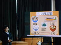 学校栄養職員の山下先生をお招きし、「給食集会」を開きました。
