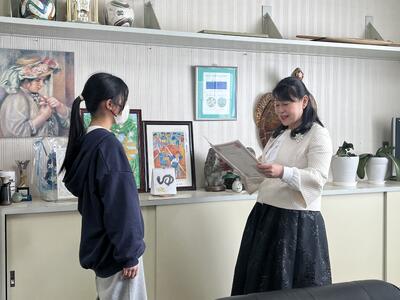 2月16日(月)、公益社団法人人吉球磨法人会による「税に関する絵はがきコンクール」の表彰が、校長室で行われました。