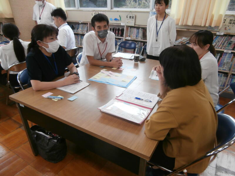 10月1日から2日までの2日間、第一中学校から3人の中学生が東間小学校に職場体験にやって来ました。