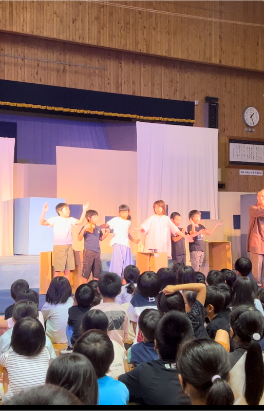 先生方の演技や演者になりきった語り口調に子供たちは驚き、そして、感動しながら、集会に参加していました。