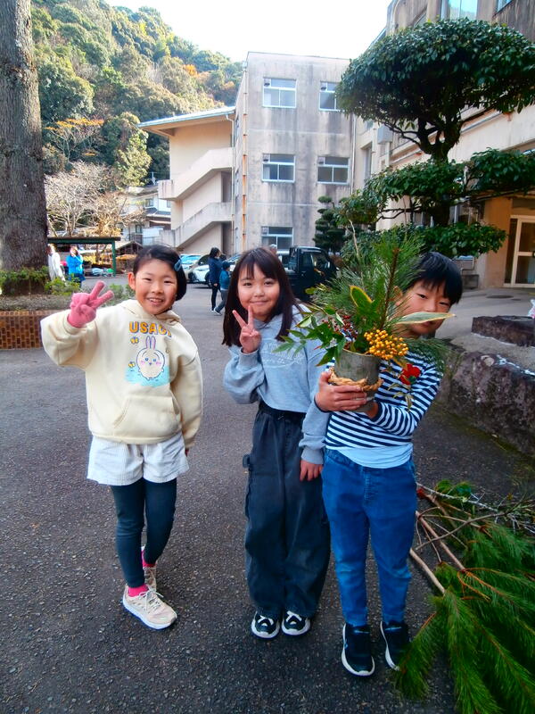 保護者の皆様、地域の方々、是非とも、東間小学校の門松を見に来られてください。