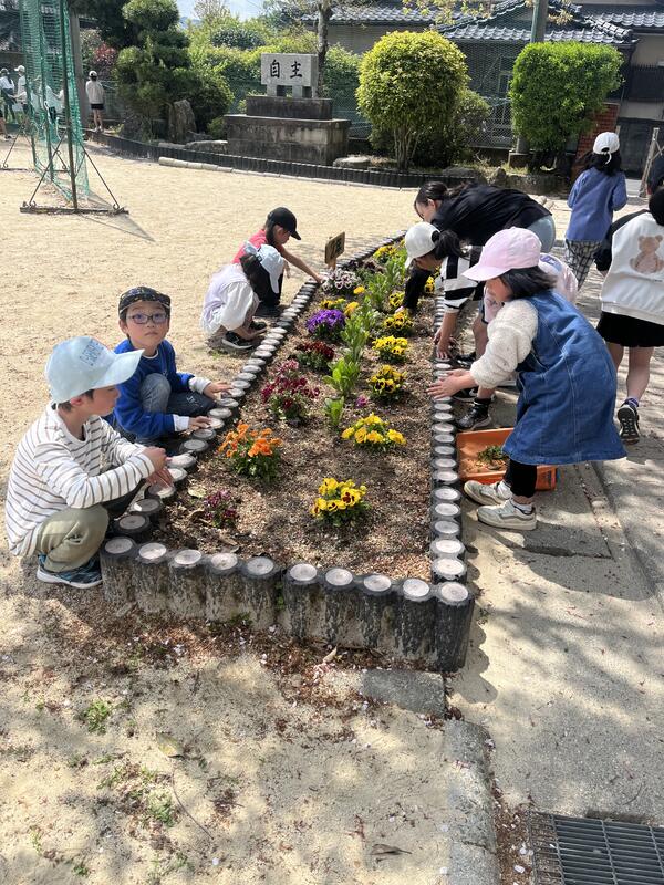 急に寒くなりました。これまで、さみしかった東間小学校の花壇も少し賑やかになりました。先日の「花いっぱいDAY」を使って、全校児童でパンジーの花の苗を植えたり、チューリップの球根を植えたり、菜の花の種を蒔いたりしました。自分たちで植えたり、育てたりすることは「命」を大切にする心に繋がると考えています。