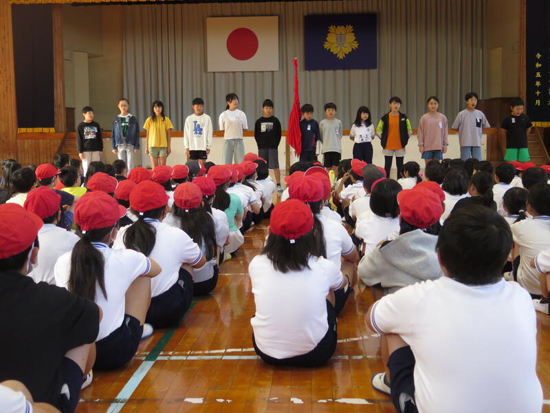 10月31日、中学年の先生方による「全校集会」が行われました。全校集会は、学校として子供たちの頑張りや課題を伝えたり、生徒指導や保健指導の場であったりするものです。