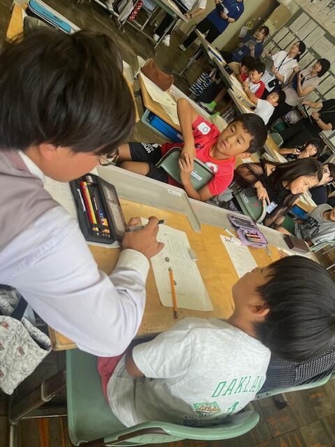 授業の支援に入ったり、休み時間には子供たちと一緒に遊んだりと沢山の子供たちとのふれあいがありました。子供たちもうれしそうでした。