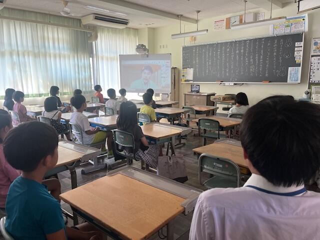 2学期からの全校集会は、体育館が使用できなくなったため、オンラインでの集会となりましたが、そのよさを活かし、先生方の工夫ある取組としています。