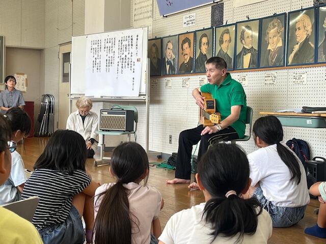 9月19日(金)、4年生は福山洋二さんとの交流会を行いました。福山さんは現在72歳。目に障害をもたれておられますが、子供たちと一緒に運動場を走られたり(伴走)、自作の歌を聴かせていただいたりしながら、生きることの素晴らしさを伝えていただきました。福山さんには毎年、本校に来ていただいています。今回もたくさんの元気をいただきました。たくさんの学びをいただきました。