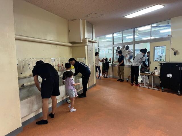 まだまだ暑い日が続いていますので、子供たちにとっても楽しみな時間になっているようです。(1年生も頑張っています。)