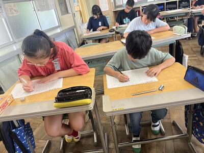9月25日(金)、校内一斉の計算大会を行いました。内容は、たし算。今回は、1年生から6年生まで同じ問題です。例えば「7+8」などです。6年生のレベルでと思われるかもしれませんが、この計算力が算数において大切な基礎基本になります。1年生も6年生に負けないぞと頑張って100問解きました。