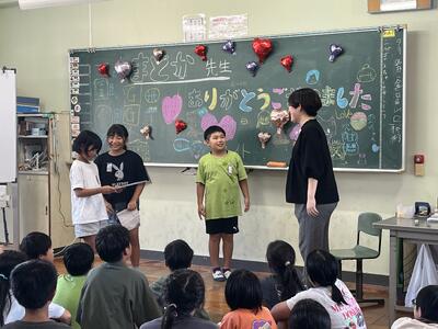 本校の竹下円香先生が出産のためお休みされることになりました。そして、竹下先生に代わり、西千夏先生が4年1組の担任になられます。