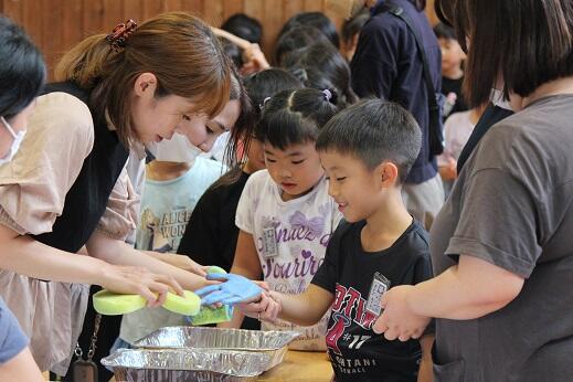 団子が蒸しあがるまでの時間でかき氷を楽しみ、お団子の試食もボランティアの方と一緒にして、作り上げる達成感と親子で触れ合う時間の穏やかさを感じる1日となりました。夏休みの『記憶に残る1日』になってくれると嬉しいです。
