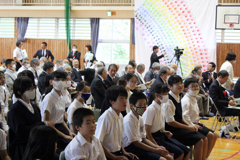 たくさんのご来賓の皆様のご臨席のもと、5・6年生参加による素晴らしい式典となりました。当日は6年生がセレモニーを行い、感謝と未来についてメッセージを述べました。