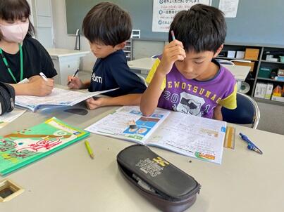 水曜日を除く4日間学習教室を行っています。心地よい雰囲気の中、いい表情で学習をしている子供たちを是非のぞきに来てみてください。