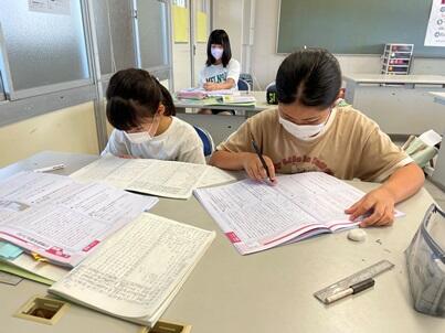 PTA主催の学習教室では子供たちも元気に登校してくれて、夏休みの宿題を頑張ってくれています。友達と一緒に勉強して、ボランティアの先生たちのアドバイスを受けながら、2時間があっという間に感じるくらい真剣に取り組む姿は感心するばかりです。一方で友達と楽しそうにしている姿も微笑ましく、いい雰囲気です。