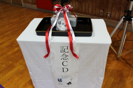 また、志波教育長から6年生全員に、6年生が録音した旅愁及び故郷の廃家のCDが贈呈されました。