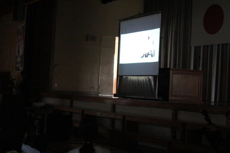 短焦点プロジェクターと100インチ自立型スクリーンを記念品として贈呈させていただきました。