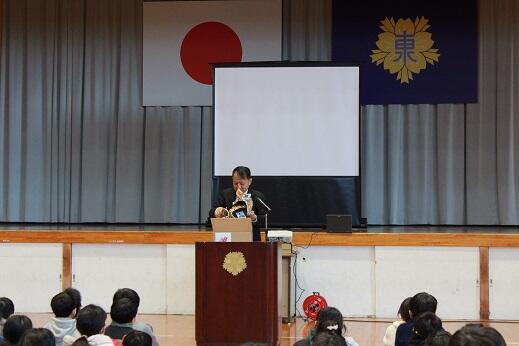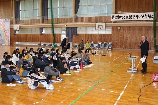 1月26日(金)、全校集会で大谷選手から贈られたグローブを紹介しました。子供たちからは ワーッという声が聞かれました。