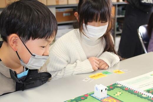 1月29日(月)、2年生がプログラミング教育の一環として、小さなロボットを動かすプログラミング体験をしました。