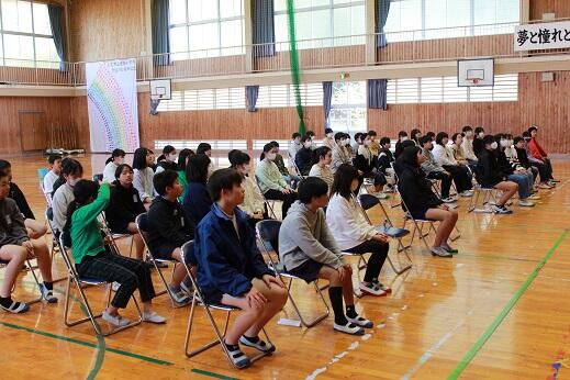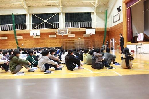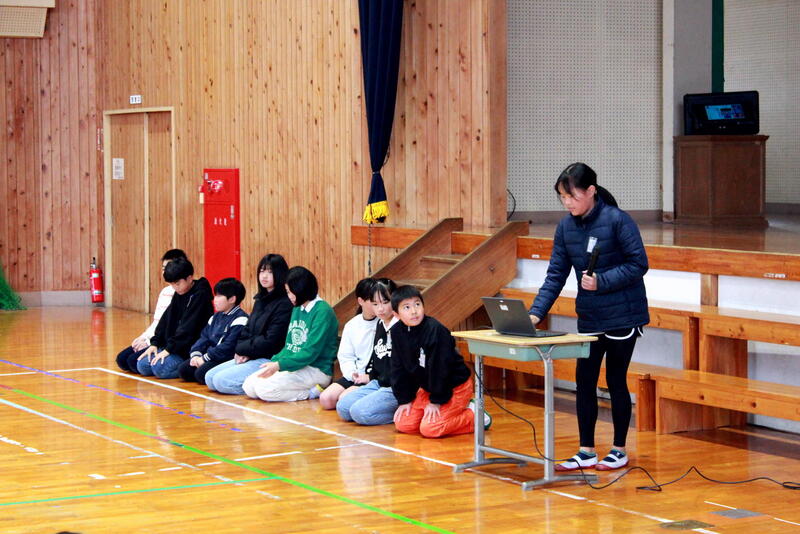 2月8日(木)、第一中学校の入学説明会が行われました。校長先生からのあいさつの後、生徒会のみなさんによる第一中学校の説明がありました。また、〇×クイズもありました。