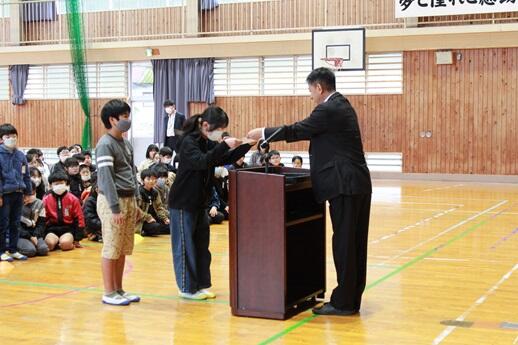 あいだっ子集会で子供たちの表彰を行いました。表彰の内容は次のとおりです。
