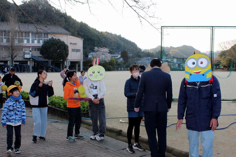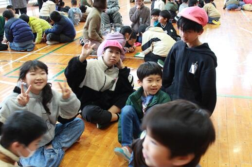 それぞれの学年の子供たちに応じて、どのような遊びがいいか、アイディアを出し合って取り組んでいます。この日は1年生と遊んでいました。2月中旬になりました。卒業まであと1か月余りですね。