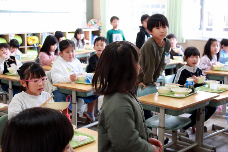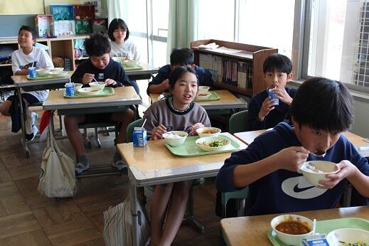 7月10日(水)、「ふれあいスクールランチ」が行われました。人吉市では、市内全ての小中学校で、松岡隼人市長と児童・生徒が直接話をする機会として「ふれあいスクールランチ」を開催しています。