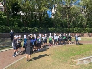 長崎に11時に着きました。子供たちはグループに分かれて昼食をとっています。意外と少食で驚いています。ここでしっかりと食べて、午後の活動に向かいます。午後は原爆資料館に向かいます。