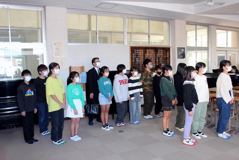 11月13日(月)、「熊本の学び研究指定校」の取組の一環として、一中校区交流会を開催しました。人吉東小学校、東間小学校の子供たちが一中に行き、第2学年の生徒(次年度3年生)さんと交流を深めました。