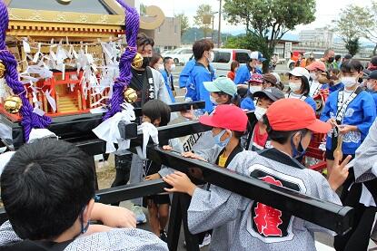 今日、9日、東間小学校区の子供会が、おくんち祭りの御神輿に参加しました。人吉の伝統文化であるおくんち祭り、私も御神輿と一緒に一周回りながら、写真を片っ端からとってきたところです。