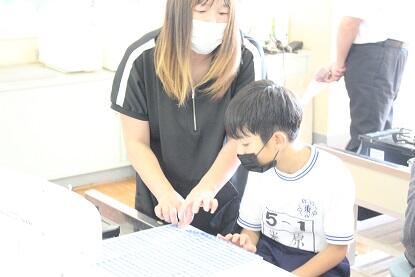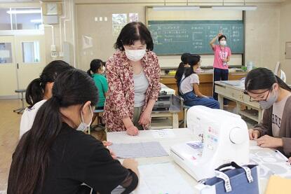 今度はまた、5年1組のミシン学習、また地域の方のお世話に