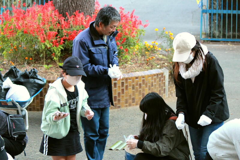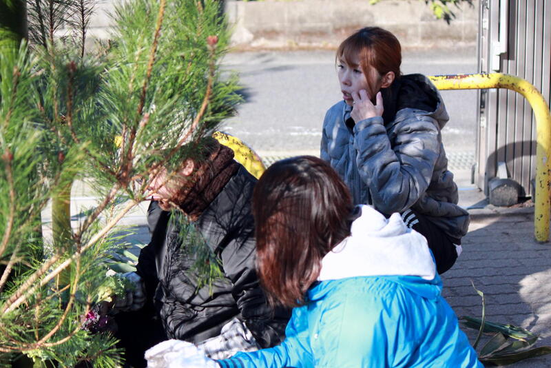 12月27日、PTAによるミニ門松づくりが行われました。たくさんの皆さんが参加し、それぞれ自分なりの門松づくりを行いました。
