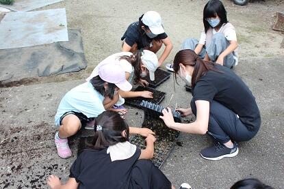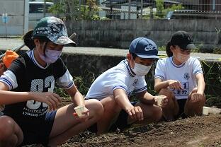 農業委員会の皆様の説明の後、子供たちは種まきの体験をしました。次は収穫の時です。