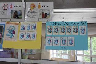 1学期のある日、教頭に伝えました。「ランドセルを背負っているゾウさんをイラストで描いてほしい。ランドセルゾウだ。」(教頭は美術の専門です)