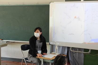 本日は1年生から4年生まで。子供たちが絵本を見つめ、読み聞かせの言葉をしっかりと受け止めながら潤いのある時間を過ごしました。