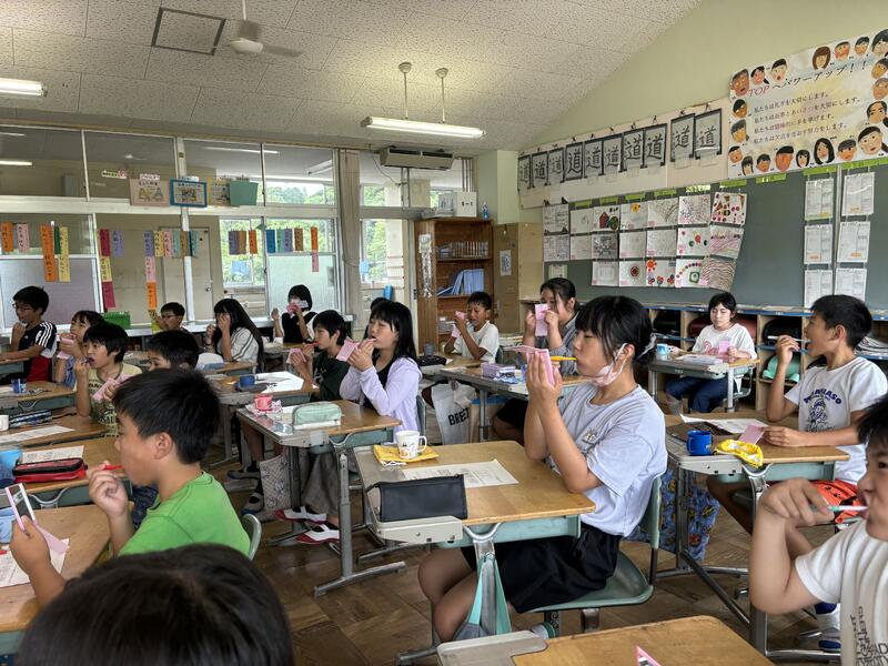 給食後の歯みがきを丁寧に行って参加しましたが、なかには、みがき残しがあった児童もいたようです。