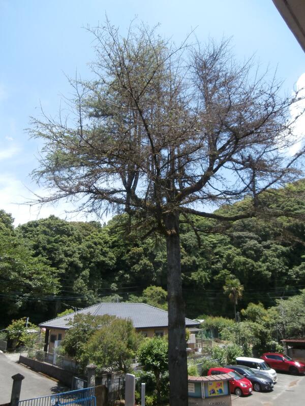 本校のシンボルである「ヒマラヤスギ」に害虫が大量に発生しました。危険な状況であり、子供たちへの影響が心配されたため、先週の水曜日、消毒をしてもらいました。