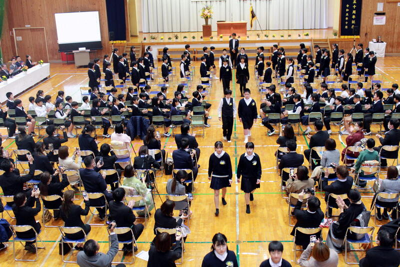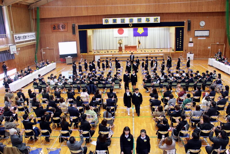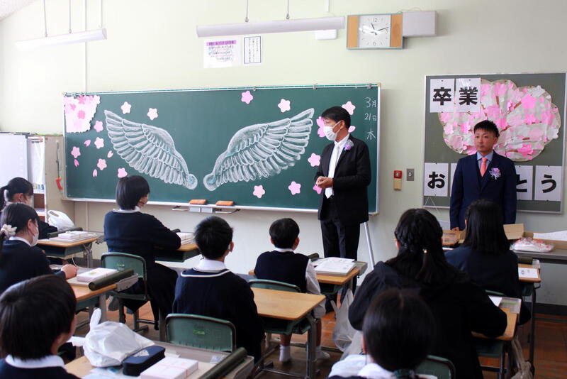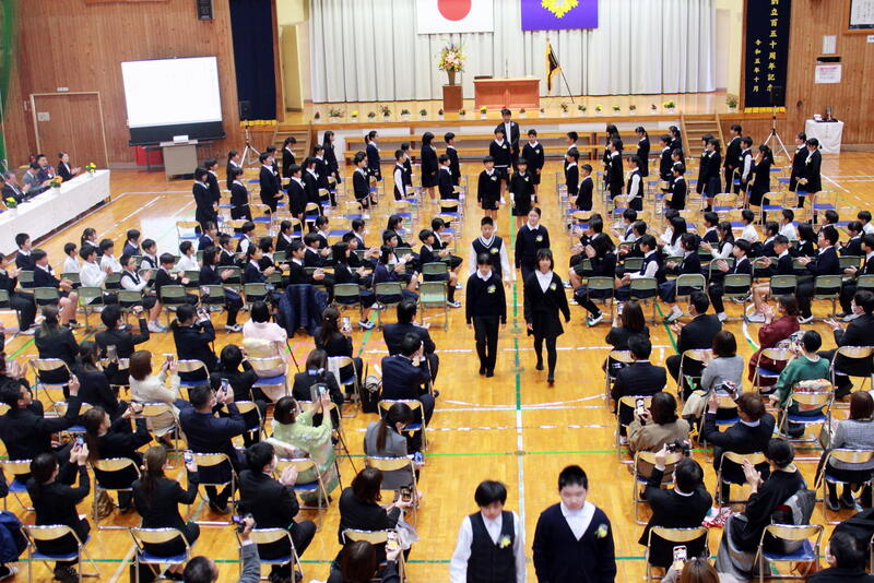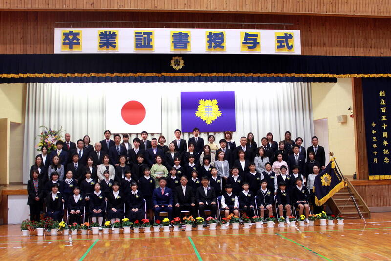 3月21日(木)、卒業式を行い、54名の卒業生が本校を巣立っていきました。卒業証書に記された一人一人の証書番号は、これまで紡がれた本校の長い歴史を受け継ぐ証であるとともに、一人一人の名前がその歴史に記された証でもあります。子供たちにとって本校は母校となります。遠い将来、懐かしむべき「心の故郷」になります。この子供たちが次の時代を力強く切り拓いてくれること、子供たちの未来が輝いた時間であることを切に願います。