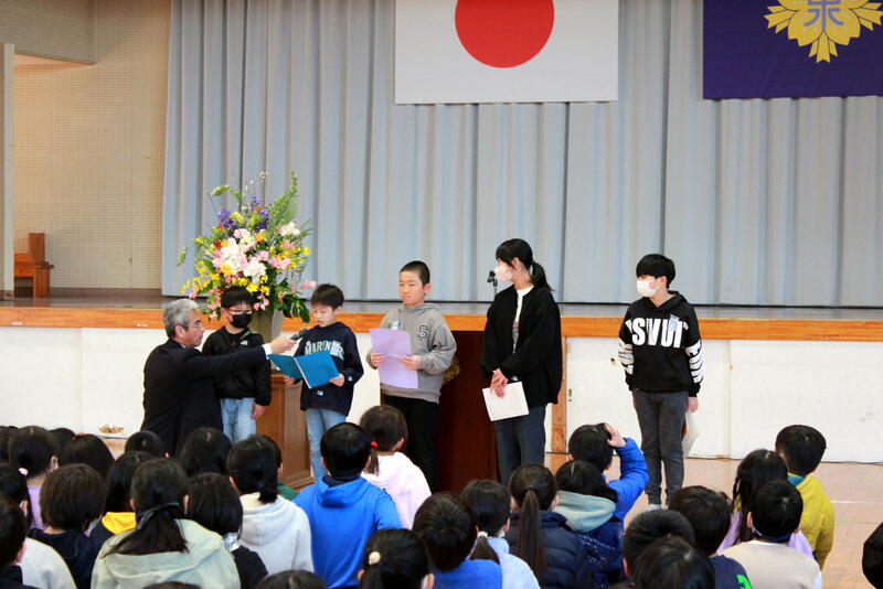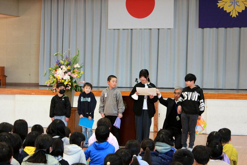 54名の卒業生を送り出した次の日、3月22日(金)、1年生から5年生までの修了式を行いました。次年度から1つずつ学年が上がり、新入生を迎えることになります。今年の修了式の後では、友達にお世話になった先生方に「ありがとう」のメッセージを伝える子供たちの光景が多く見られました。いよいよ令和5年度も終わることになります。