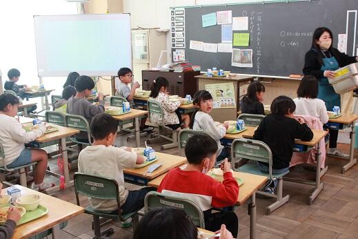1年生と6年生の様子をお届けします。もうすぐ卒業する6年生も5年前はこんな雰囲気だったのでしょうね。6年生にとっての小学校最後の給食はどうでしたか?