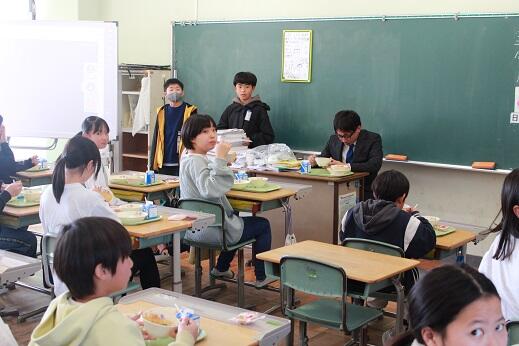 1年生と6年生の様子をお届けします。もうすぐ卒業する6年生も5年前はこんな雰囲気だったのでしょうね。6年生にとっての小学校最後の給食はどうでしたか?
