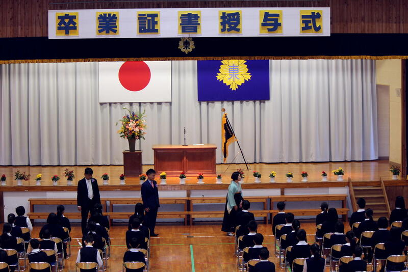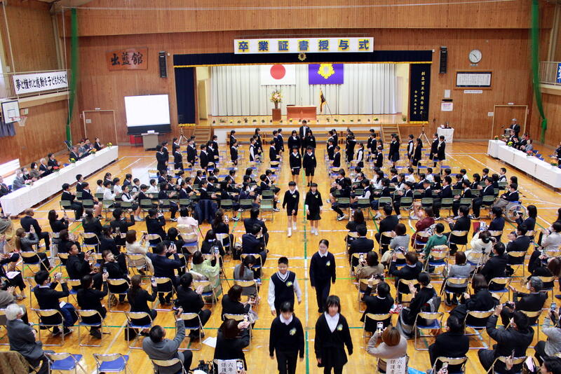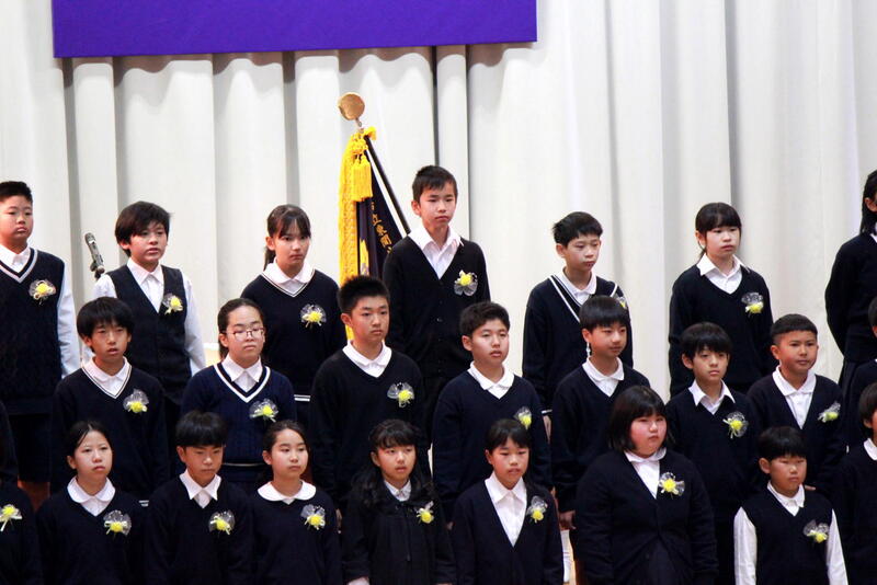 3月21日(木)、卒業式を行い、54名の卒業生が本校を巣立っていきました。卒業証書に記された一人一人の証書番号は、これまで紡がれた本校の長い歴史を受け継ぐ証であるとともに、一人一人の名前がその歴史に記された証でもあります。子供たちにとって本校は母校となります。遠い将来、懐かしむべき「心の故郷」になります。この子供たちが次の時代を力強く切り拓いてくれること、子供たちの未来が輝いた時間であることを切に願います。