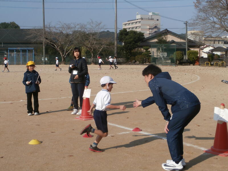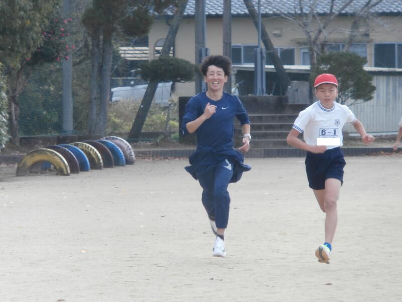 なお、6日(金)にゲストティーチャーとして鶴山さんにおいでいただき走り方の「こつ」を教えていただきました。鶴山さんは、熊本県屈指のマラソンランナーです。子供たちの鶴山さんと一緒に楽しく、かつ、真剣に走る姿はとても素敵でした。