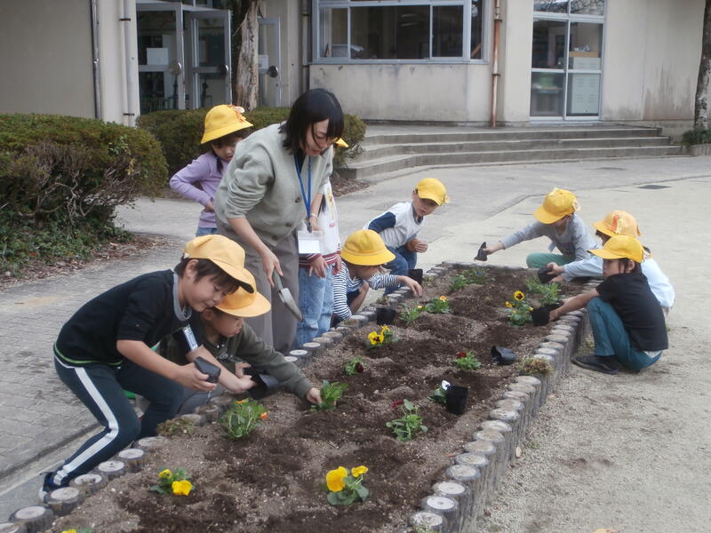 急に寒くなりました。これまで、さみしかった東間小学校の花壇も少し賑やかになりました。先日の「花いっぱいDAY」を使って、全校児童でパンジーの花の苗を植えたり、チューリップの球根を植えたり、菜の花の種を蒔いたりしました。自分たちで植えたり、育てたりすることは「命」を大切にする心に繋がると考えています。