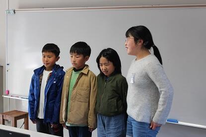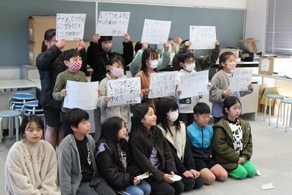 3月1日の全校集会で、人吉球磨小中学校工作展の表彰を行いました。代表として